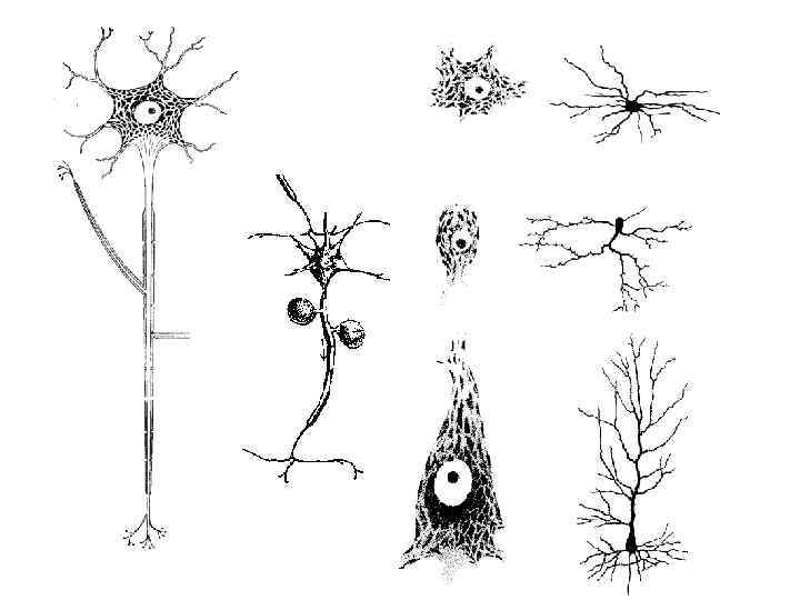 • • • 1. 2. 3. • • • Морфологическая классификация: одноотростчатые – униполярные, ложноодноотростчатые – псевдоуниполярные, двух отростчатые – биполярные и мпогоотростчатые – мультиполярные. Функциональная классификация: Чувствительные, к которым относятся первичные рецепторные нейроны органов чувств и псевдоуниполярные клетки, Вставочные, подразделяющиеся на проекционные, посылающие нейрит в ростральном и каудальном направлении, комиссуральные, посыляющие нейриты к соответствующим областям противоположной половины мозга, ассоциативные, аксоны которых располагаются в той же области, где и тело нейрита. двигательные Химическая классификация: Холинергические , Катехоламинергическиеи(дофаминергические и норадренергические, Серотонинергические, Гистаминергические.