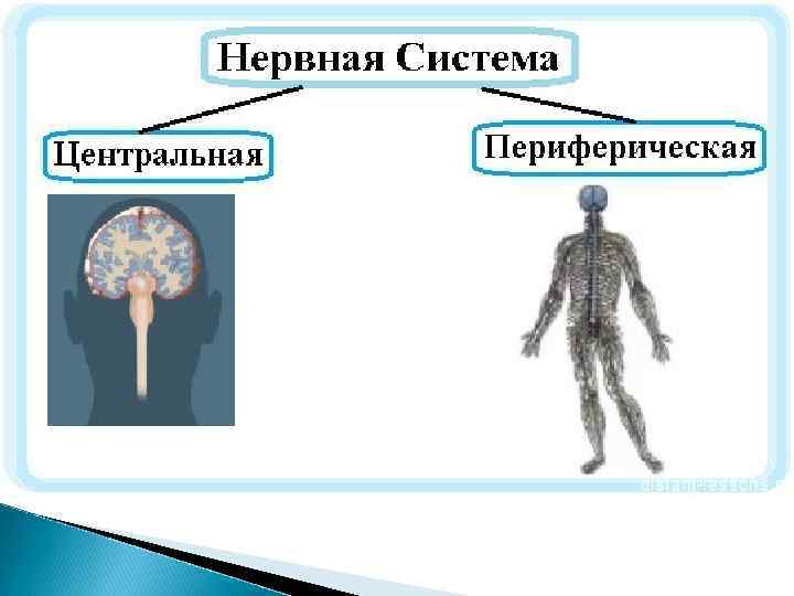 Центральная нервная система Организм человека работает как единое целое. Слаженность и взаимодействие всех органов обеспечивает центральная нервная система. Она имеется во всех живых существах и состоит из нервных клеток и их отростков. Центральная нервная система — это головной и спинной мозг, а периферическая — отходящие от них нервы и нервные узлы, расположенные за пределами черепа и позвоночника. Центральную нервную систему защищают костные образования скелета: черепная коробка и позвоночник.