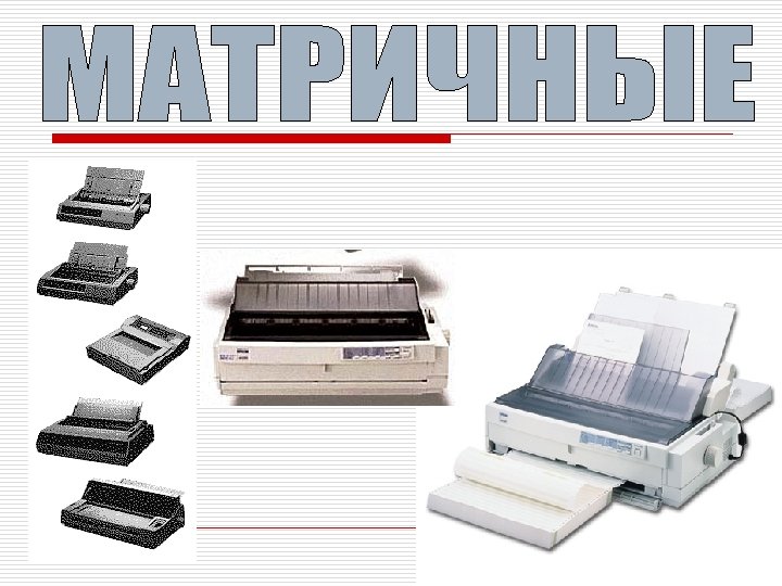 Классификация принтеров по технологии печати Ø Ø Ø Ø Матричные Струйные Лазерные LED-принтеры (светодиодные) Принтеры с изменением фазы красителя Принтеры с термосублимацией Принтеры с термопереносом восковой мастики