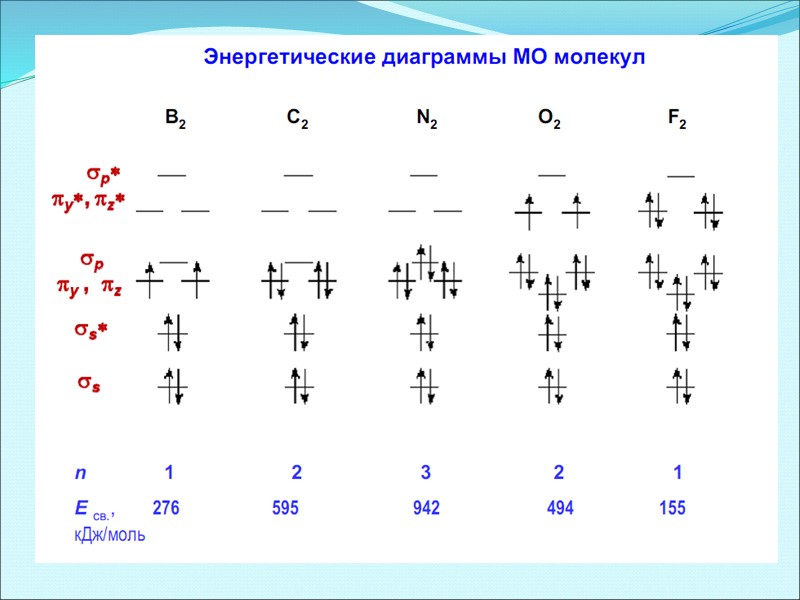 Энергетические диаграммы двухатомных молекул и ионов элементов второго периода ПСЭМ