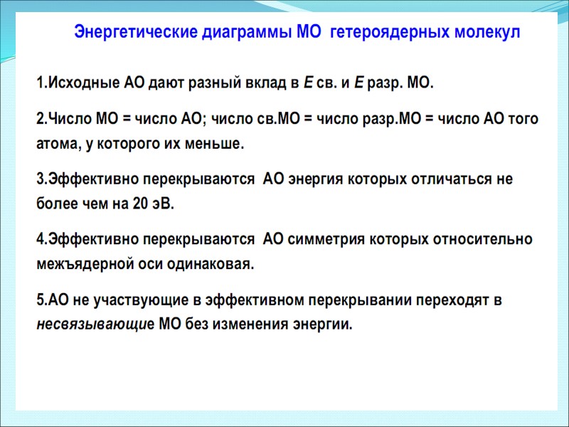 Энергетическая диаграмма МО для гетероядерных молекул