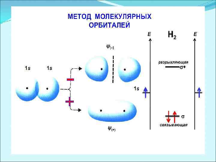 Схема образования связывающей и разрыхляющей молекулярных орбиталей.
