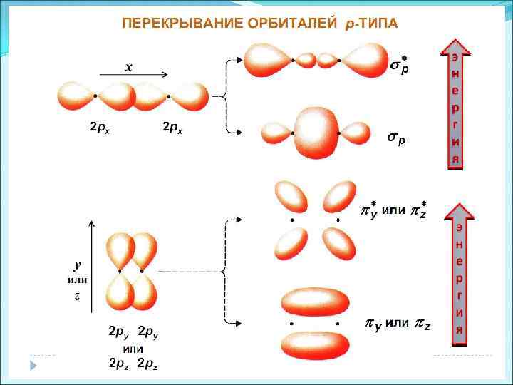 Схема образования связывающих и разрыхляющих МО для 2 р-атомных орбиталей