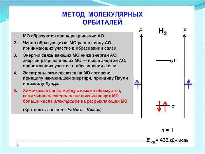 Энергетическая диаграмма АО и МО в молекуле Н 2