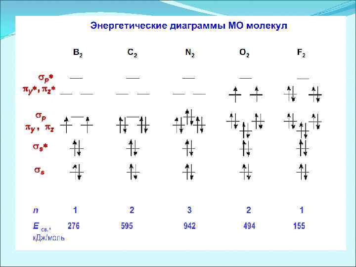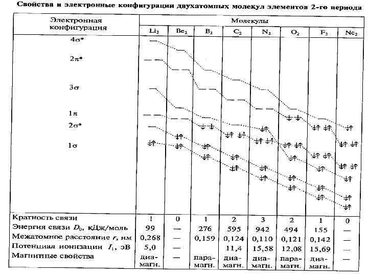 Энергетические диаграммы двухатомных молекул и ионов элементов второго периода ПСЭМ