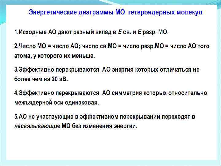 Энергетическая диаграмма МО для гетероядерных молекул