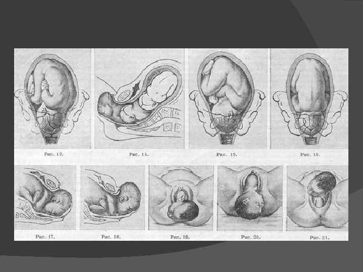 Теории биомеханизма родов: Гиппократ: «во время родов ребёнок двигается и изгибается, руками и ногами он прорывает внутреннюю оболочку» Оулд (1742 г) положил начало изучению механизма родов, обнаружив, что головка плода при входе в таз вставлена в поперечном размере, а рождается в прямом (1742 г. и 1769 г. ) Профессора-акушеры из Страсбурга Фридотец и Фрид-сын попытались дать объяснение вращению головки, за счёт разницы в размерах различных отделов таза и приспособления к ним рождающейся головки Пюзо и Смели: соотношение размеров таза и головкиявляется важнейшим для понимания механизма родов Редерер разделил механизм родов на пять основных моментов Российский учёный Н. М. Максимович-Амбодика объяснил механизм родов меняющимся соотношением размеров головки и различных отделов таза.