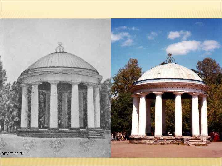 Ротонда в городском саду (1824 год, ул. Сибирская, 41) Ротонда в бывшем загородном с конца XIX века является декоративным центром парка имени Горького в Перми. Ротонда - композиционный центр сада со временем стала символом города. Беседка-ротонда появилась еще в 1824 году, когда город готовился к приезду императора Александра I. Тогда архитектор Свиязев и создал этот шедевр. Ротонда представляет собой круглую беседку, воздвигнутую на возвышении, и состоящую из 12 колонн, на которых покоится купол в форме полусферы. Вся конструкция, кроме каменного подиума, сделана из дерева, но отделка создает впечатление камня