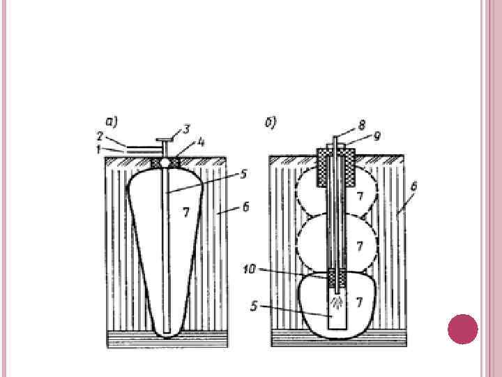 ТЕРМИЧЕСКИЙ СПОСОБ Термическое закрепление заключается в обжиге лёссовых грунтов раскаленными газами, которые подаются в толщу грунта вместе с воздухом через жаропрочные трубы в пробуренных скважинах.