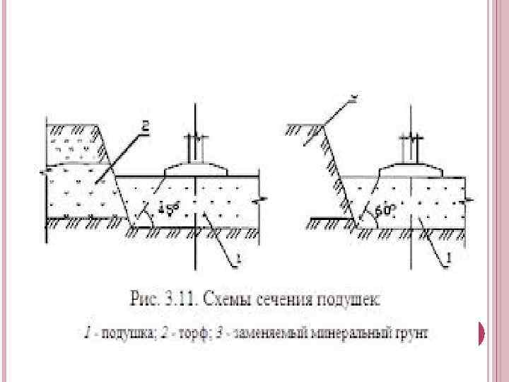 ГРУНТОВЫЕ ПОДУШКИ Устройство грунтовых подушек заключается в замене слабого грунта основания другим, более прочным, для чего слабый грунт удаляют, а на его место насыпают прочный грунт и послойно утрамбовывают.