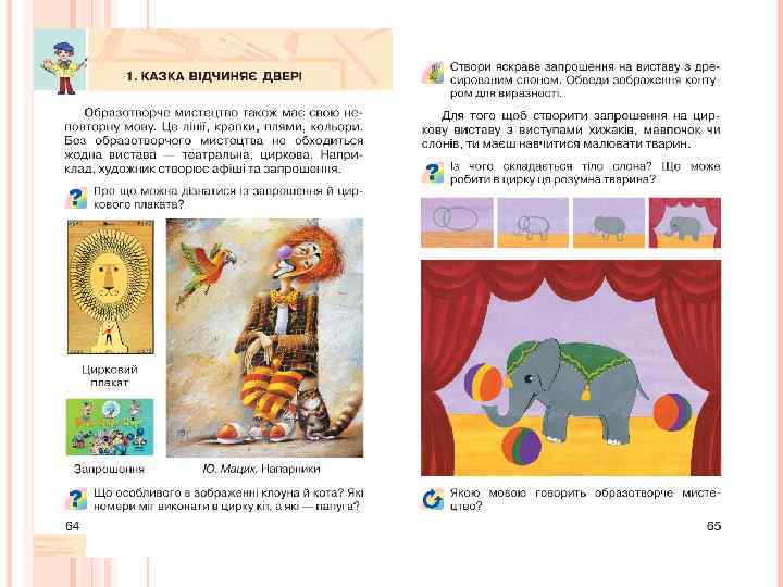 Перший форзац знайомить дітей з мешканцями країни Образотворчого мистецтва