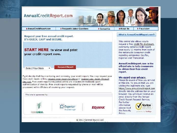 Lesson 4 – Getting Your Credit Report – handout 4 www. annualcreditreport. com – only official website to get your no-cost reports ¢ 1 -877 -322 -8228 ¢ Use form to receive in mail (pages 5 & 6 of handouts in green folder) ¢ 3 national bureaus – Equifax – Trans. Union – Experian ¢ Free report does not include your credit score ¢