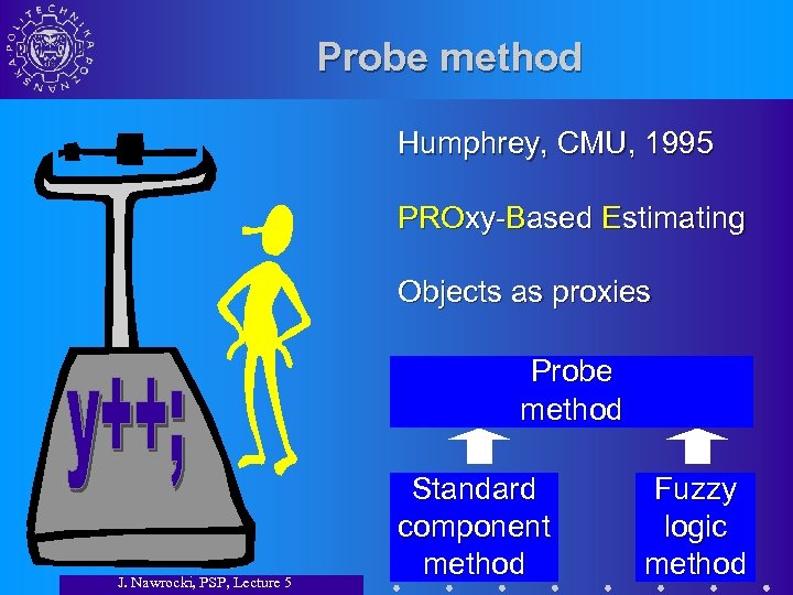Probe method Humphrey, CMU, 1995 PROxy-Based Estimating Objects as proxies Probe method J. Nawrocki, PSP, Lecture 5 Standard component method Fuzzy logic method