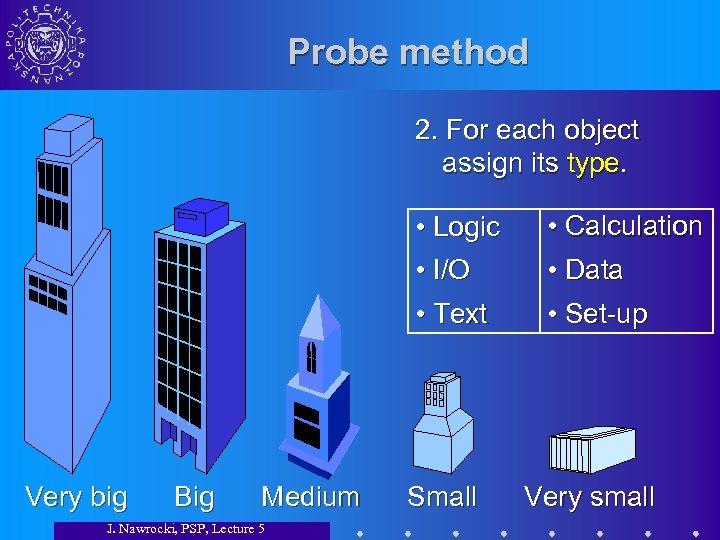 Probe method 2. For each object assign its type. • Logic • I/O • Text Very big Big Medium J. Nawrocki, PSP, Lecture 5 • Calculation • Data • Set-up Small Very small