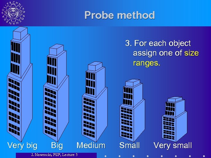 Probe method 3. For each object assign one of size ranges. Very big Big Medium J. Nawrocki, PSP, Lecture 5 Small Very small