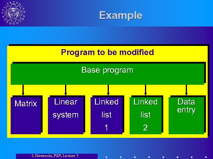 Example Program to be modified Base program Linear Linked system list 1 Matrix 2 J. Nawrocki, PSP, Lecture 5 Data entry