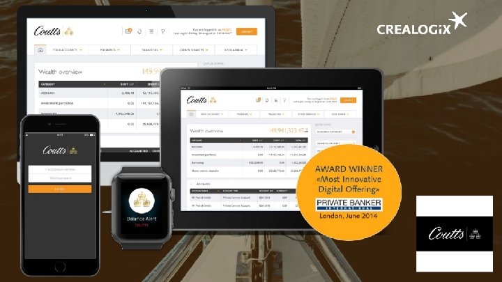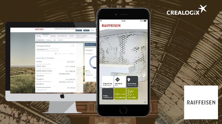 Многоплановая компетенция CREALOGIX в области финансовых технологий Заинтересованность клиентов Операционное обслуживание Счета /карты /активы Комиссионные /Платежи /Отчетность Сообщения /Извещения /Уведомления Персонализация /заполнение профилей /Аналитика Мероприятия /CMS /адаптация Общество /общение Мобильный банкинг Начало процесса /весь процесс с мобильного Схемы Touch ID /Foto /Push. TAN Multi. OS Portal. App Безопасность при общении по Интернет и мобильному устройству Защищённый браузер Приложения с усиленной защитой Контрольные устройства Цифровое обучение Обучение клиентов Среды обучения Соотвествие нормативам Консультации по финансовым вопросам Хаб цифрового банкинга: мост в будущее Консультирование гибридного и автоматического типов Управление личными финансами Финансовое планирование Корпорации /предприятия среднего и малого бизнеса Управление финансами предприятия Структурирование нескольких банков через интерфейсы API Управление денежными средствами Цифровой платёж Платформа обмена финансовой информацией EBICS как услуга Устройство /приложение сканирования платежа конечного пользователя