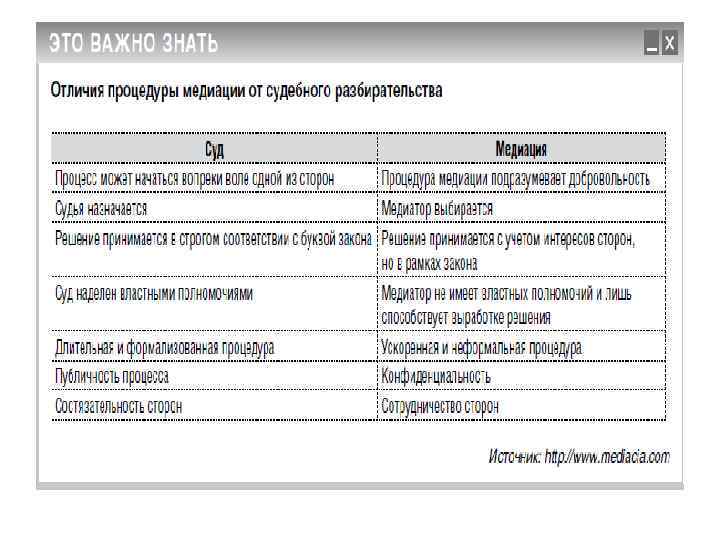 Задача медиации удовлетворить интересы сторон, найдя оптимальный выход из сложившейся ситуации, с минимальными негативными последствиями и издержками