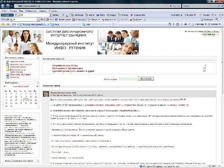 Система дистанционного интернет обучения МИИР www. anomiir. ru