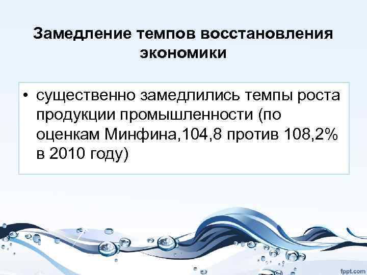 Замедление темпов восстановления экономики • существенно замедлились темпы роста продукции промышленности (по оценкам Минфина, 104, 8 против 108, 2% в 2010 году)