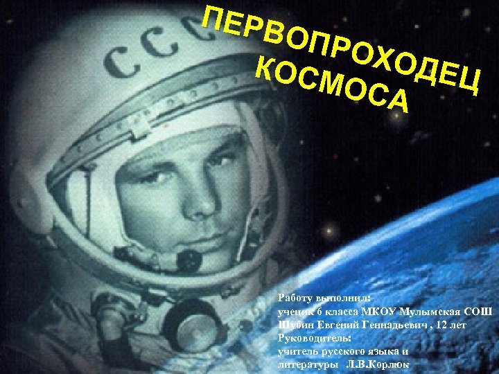 ПЕРВ ОПР ОХО КОСМ ДЕЦ ОСА Работу выполнил: ученик 6 класса МКОУ Мулымская СОШ Шубин Евгений Геннадьевич , 12 лет Руководитель: учитель русского языка и литературы Л. В. Корлюк