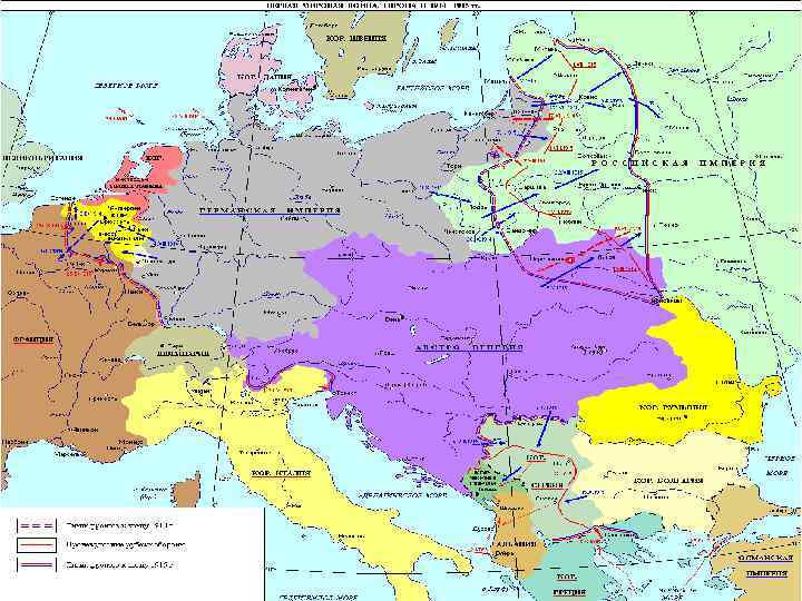 Планы сторон. Антанта План XVII —план Франции накануне Первой мировой войны. 1. Французское командование планировало разместить войска вдоль своей восточной границы и начать наступление через территории Лотарингии и Эльзаса, занятые немцами после франко-прусской войны 1870 -1871 гг. 2. Россия должна была начать активные военные действия одновременно с Германией Это должно было заставить Германию оттянуть часть войск с Западного фронта, что заставляло ее вести войну на два фронта.