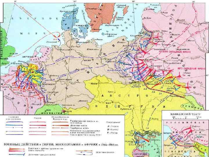 Основные боевые действия и события Даты Западный фронт Восточный фронт Важнейшие политические события 1914 г. Вторжение германских войск в Бельгию и Францию по «плану Шлиффена» Наступление русских войск в Восточной Пруссии и Галиции Развал II Интернационала Битва на Марне. Отход германских войск до реки Эна Отступление русских войск из восточной Пруссии. Ожесточенные бои в Польше - - - Август Сентябрь 1915 г. Апрель Первое применение германским командованием боевых отравляющих веществ (газов) в районе г. Ипра Май Объявление Италией войны Австро. Венгрии Прорыв германскими войсками фронта в Галиции. Начало отступления русских Выход Италии из Тройственного союза. Четверной союз Германия, Австро-Венгрия, Болгария, Османская империя 1916 г. Верденское сражение. Ютландский морской бой. - Нарастание социальной напряженности в воюющих странах. Март 1917 г. Февраль – март 1918 г. Сентябрьноябрь 11 ноября Начало использования бомбардировочной авиации против гражданских объектов в тылу. Окончание Первой мировой войны Капитуляция Болгарии и Турции Развал Австро-Венгерской империи. - Наступление англо-французских войск от Северного моря до реки Маас. - Буржуазно-демократическая революция в России. Свержение самодержавия. Революция в Германии