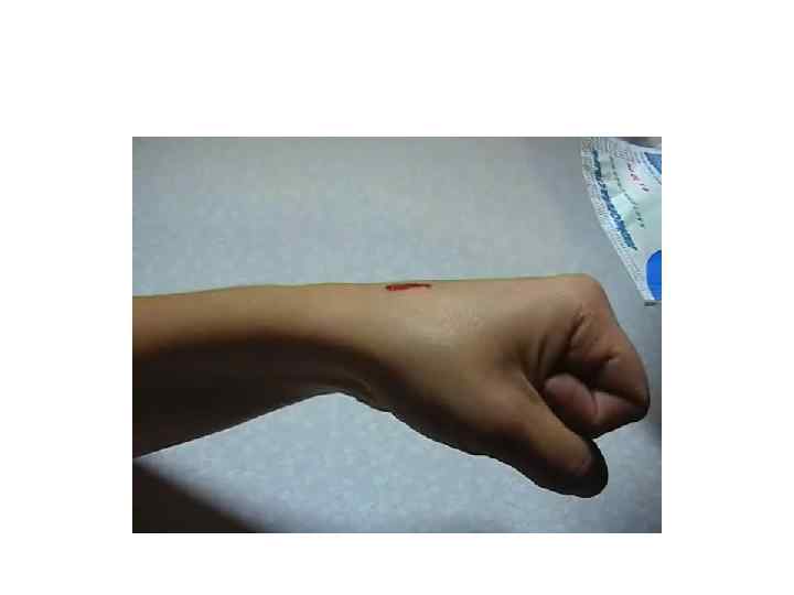 Венозное кровотечение • При повреждении вен из раны вытекает темно-вишневая кровь. Такое кровотечение можно остановить наложением на место ранения давящей повязки. • Если в глубокой ране находится травмирующий предмет, то до обращения к врачу его нельзя вынимать, поскольку это может вызвать сильное кровотечение. • Пока предмет находится в ране, кровеносные сосуды сжаты, рана меньше кровоточит. При наложении повязки надо следить, чтобы положение травмирующего предмета было по возможности фиксировано. При венозном кровотечении пострадавшего необходимо срочно отправить в больницу или травмпункт. Удаление попавшего в рану предмета может выполнить только опытный врач-хирург, располагающий необходимыми знаниями и инструментами.