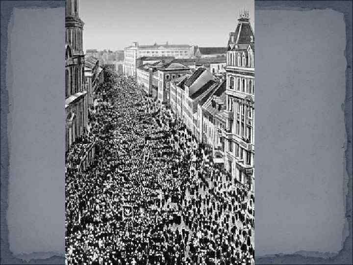 Начало революции 3 января 1905 г. - стачка на Путиловском заводе в Петербурге. Требования: повышения заработной платы, Отмена обязательных сверхурочных работ и установления 8 -часового рабочего дня. К 8 января стачка охватила уже 111 тыс. рабочих Петербурга, принимая всеобщий характер. В это время в организации Георгия Гапона созрел план устроить мирное шествие к царю для подачи петиции о нуждах рабочих. (отражало бедственное и бесправное положение рабочих) амнистия политическим заключенным, неприкосновенность личности, свобода слова, печати, собраний, равенство всех перед законом, разрешение на создание профессиональных рабочих союзов, отмена выкупных платежей крестьян за землю и передача ее во всенародное достояние, отделение церкви от государства, созыв Учредительного собрания.