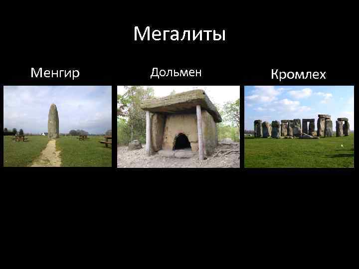 Мегалиты Менгир Дольмен Кромлех