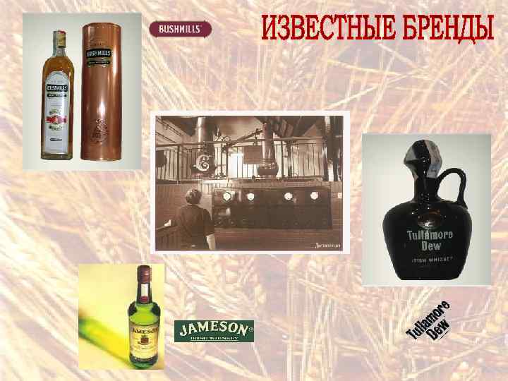 Различают несколько стилей виски: q шотландский (скотч), q ирландский, q американский q японский. Виски может называться шотландским, если: 1. Он произведен на территории Шотландии из шотландского ячменя, с использованием шотландской воды. 2. Имеет крепость не менее 40% алк. об. 3. Выдерживался в бочках не менее 3 -х лет. 4. Объем бочки должен быть не более 700 л.