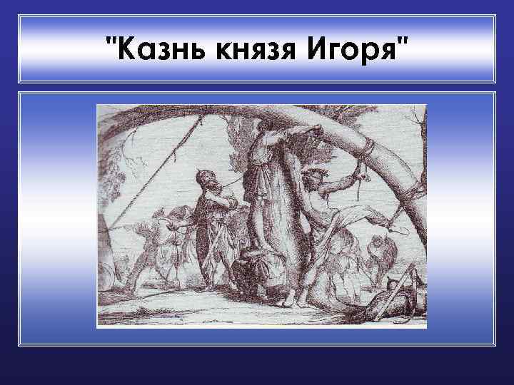 Внутренняя политика Ольги • Расправилась после убийства Игоря с древлянами. • Древляне после убийства Игоря прислали к его вдове Ольге сватов звать её замуж за своего князя Мала. Княгиня последовательно расправилась со старейшинами древлян, а затем привела к покорности народ древлян. Древнерусский летописец подробно излагает месть Ольги за смерть мужа.