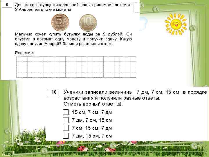 6. Работа с текстовыми задачами (14) ü Решать арифметическим способом (в 1— 2 действия) учебные задачи и задачи, связанные с повседневной жизнью 10. Числа и величины (20) ü Читать, записывать и сравнивать величины: масса, вместимость, время, длина, площадь, скорость; переходить от одних единиц измерения к другим
