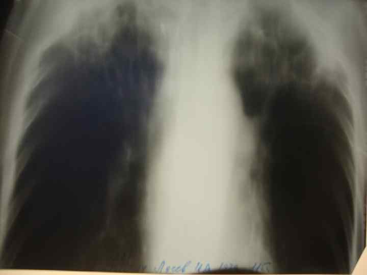 По сравнению с данными от 11. 02. 14 г. – отмечается частичное рассасывание очагово-инфильтративных изменений в верхних долях обоих легких. Полости распада с обеих сторон сохраняются, уменьшилась прекавитарная инфильтрация.