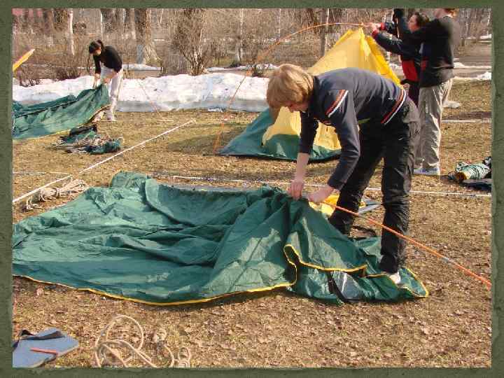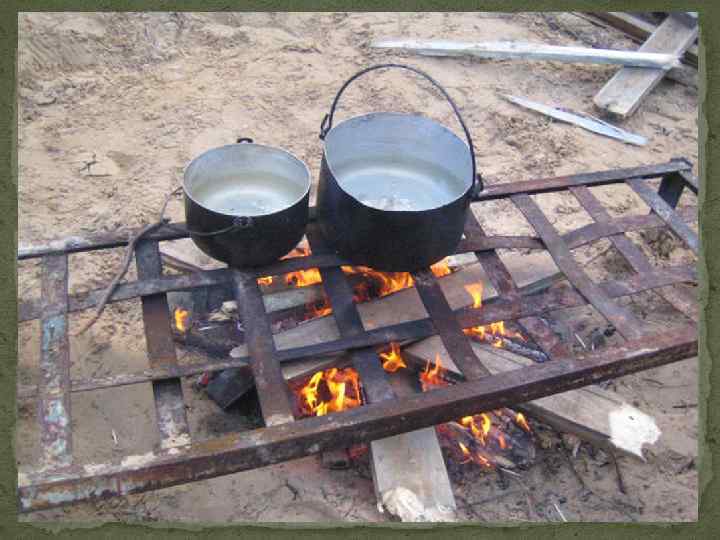 СНАРЯЖЕНИЕ: Индивидуальное Рюкзак Спальный мешок Коврик Дождевик Кружка, ложка, миска, нож Фонарик Сидушка Сменная обувь и одежда Спички Снасти для рыбалки Итого : 8 кг Групповое (на 10 чел. ) Палатка – 3 шт Костровое – 1 шт Топор – 2 шт Пила – 2 шт Котлы – 2 шт Аптека – 1 шт Ремнабор – 1 шт Тент – 1 шт Мяч – 1 шт Итого : 30 кг