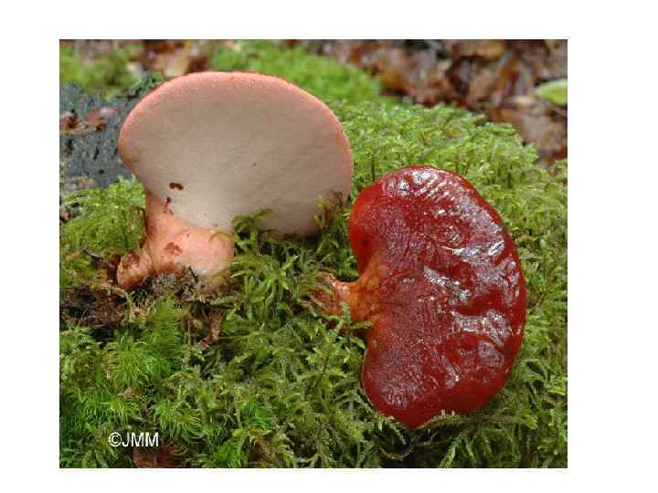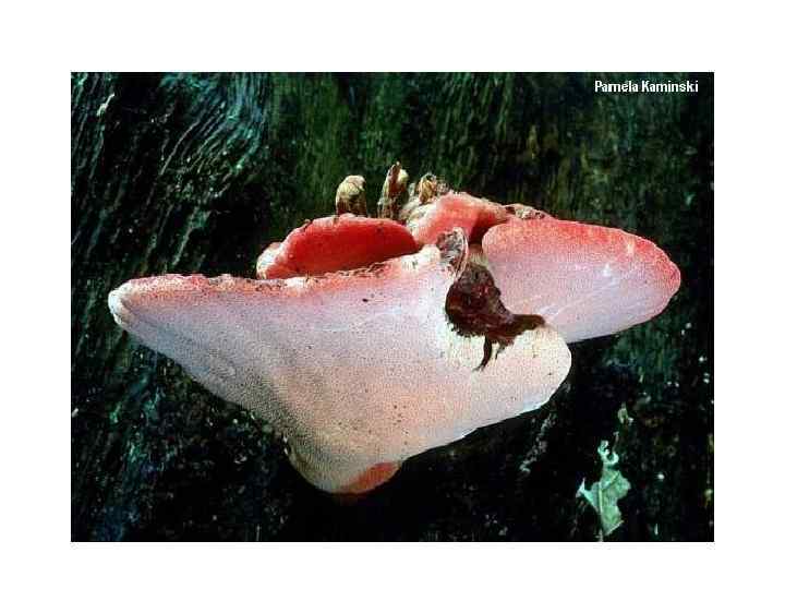 В результате длительного процесса гниения древесина окрашивается в красновато-бурый цвет и распадается на призмочки, а в нижней части ствола образуется дупло. Через несколько лет после заражения на дереве образуются однолетние плодовые тела в виде плоских округлых шляпок размером 10 -30 см на коротких ножках. Нередко к одной ножке прикреплены 2 -3 шляпки языкообразной формы. В молодом возрасте плодовые тела мясистые, в старости плотные, грубо-волокнистые. Верхняя поверхность их сначала оранжево- или кроваво-красная, позднее темно-бурая. Ткань шляпки сочная, с красноватым соком, мягкая, липкая, на разрезе имеет мраморный рисунок из-за радиально расположенных светлых прожилок.