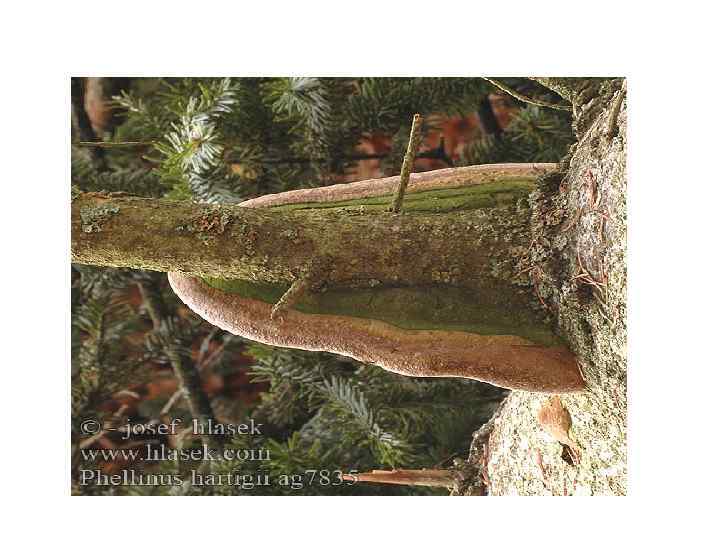 Светло-желтая центральная гниль хвойных пород Phellinus hartigii трутовик Гартига
