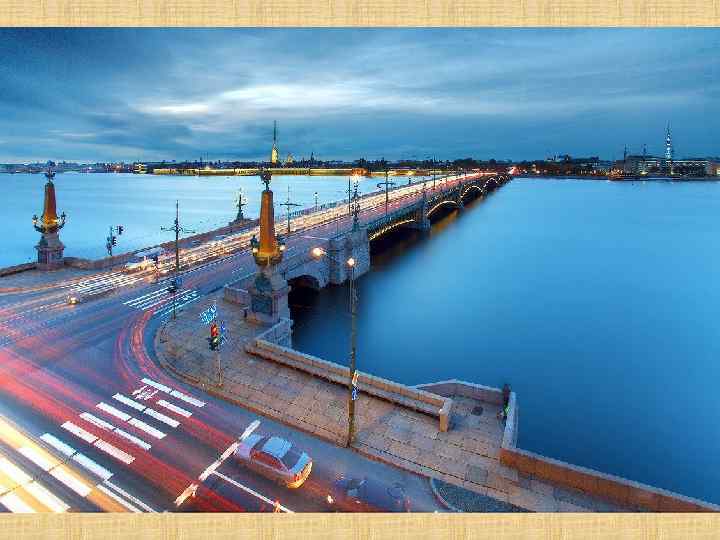 Троицкий мост (с 1918 по 1934 г. — мост Равенства, с 1934 по 1991 г. — Кировский мост) — разводной мост через Неву в Санкт-Петербурге. Соединяет между собой Петроградский и 1 -й Адмиралтейский острова. Третий постоянный мост через Неву после Благовещенского и Литейного), один из красивейших петербургских мостов. До возведения в 1965 г. моста Александра Невского он оставался самым длинным в городе (582 м).