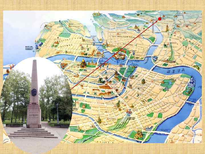 Обелиск павшим в Великой Отечественной войне На обелиске выбито: «На этом рубеже 18 сентября 1941 года героические защитники Ленинграда остановили германские полчища и заняли несокрушимую оборону» . Стоит на берегу р. Дудергофки, недалеко от Лиговского путепровода и пр. Народного Ополчения. Здесь проходил «Кировский вал» обороны города. Обелиск защитникам города Обелиск находится у развилки пр. Стачек и пр. Маршала Жукова. Его основание сделано из бывшего мраморного верстового столба XVIII в. , взятого с шоссе напротив Новознаменки.