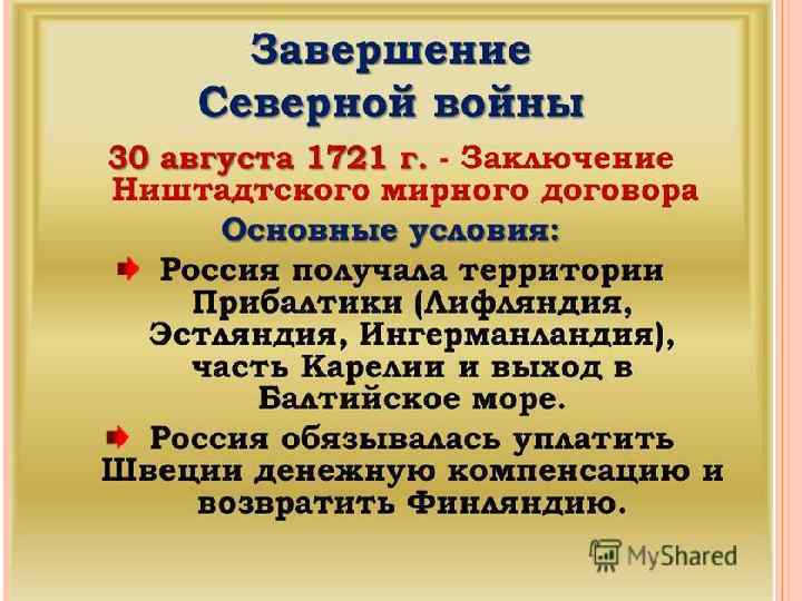 Петр 1 (1672 -1725 гг) вошел в историю России как царь реформатор. При нем были осуществлены важнейшие преобразования, которые позволили России преодолеть отставание от ведущих стран Европы и стать великой державой. В ходе Северной войны (1700 -1721 гг. ) со Швецией Россия вышла к Балтийскому морю и завоевала Прибалтику.