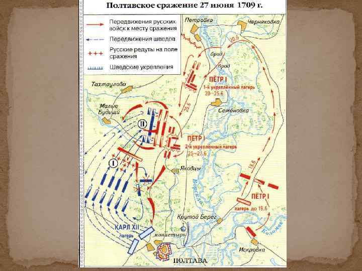 1706 Карл XII август 1708 Отряд Голицына сент. 1708 Петр, Меньшиков против Левенгаупта Петр и Карл XII Июнь 1709 Захватил всю Польшу, разгром Августа II сражение при с. Доброе Около д. Лесной ( «матерью Полтавской баталии» Полтава ? ? Карл XII отказался идти на Москву, повернул на Украину ? ? ? ? Карл XII не получил подкрепления продовольствия, оружия