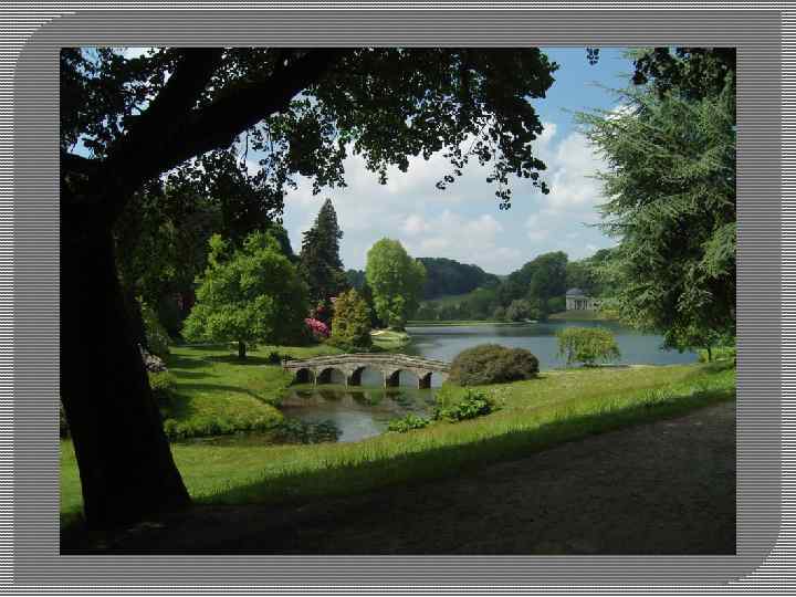 Одним із перших типових англійських парків став парк Стоу поблизу Бірмінгема. Його розпочав створювати у 1713 р. Бріджемен, а завершив у 1738 р. В. Кент. Територія парку площею 100 га мала неправильну форму і різноманітний рельєф: глибокий яр, горби, розлогі схили.