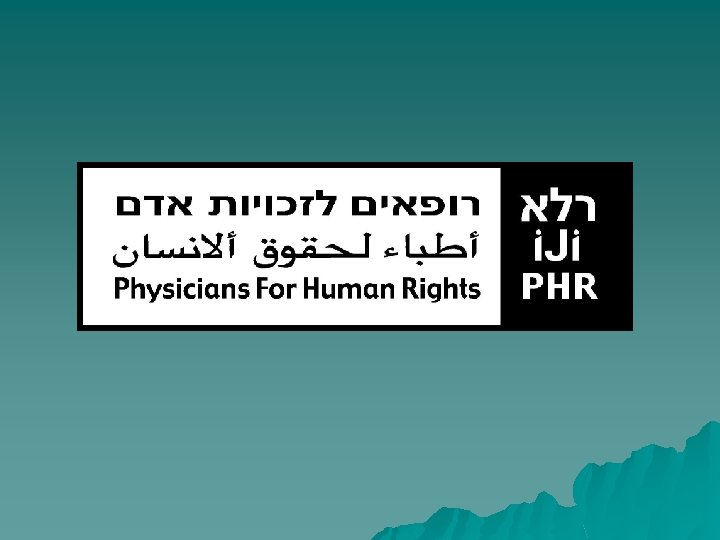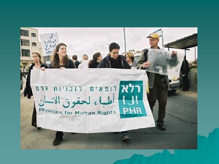 Physicians for Human Rights-Israel (PHR-Israel) was founded in 1988 with the aim of striving to promote medical human rights in Israel and in the territories under its effective control. The basic values of PHR-Israel are human dignity, protection of bodily and mental integrity, and promotion of the right to health and medical care. These values guide the association's activities and campaigns. We believe that it is our duty to be fully informed of human rights violations, to disseminate this information and to struggle against such violations and for the right to health, for individuals and for the community.