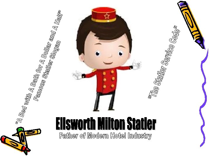 • Ellsworth Milton Statler, at the age of fifteen, became the head bellman with only two years experience as a bellboy in one of the leading hotels in Wheeling, West Virginia. • Some fifty years later, he was to have a hotel chain named after him and to be considered one of the premier hotelman of all time.