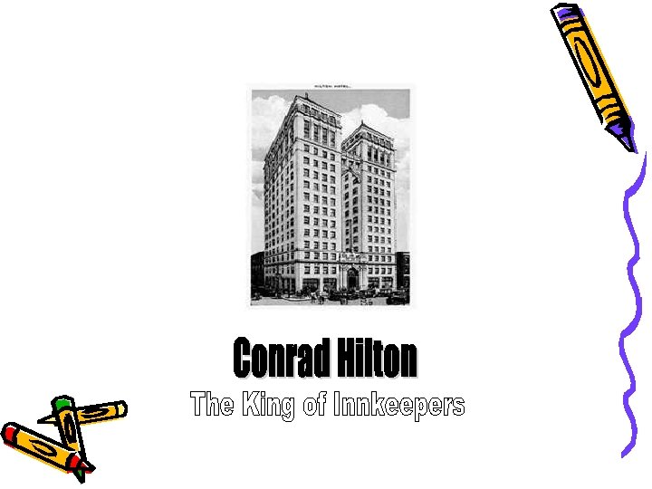 • In 1938, Conrad Hilton opened his first hotel outside Texas, the Sir Francis Drake in San Francisco. • In 1943, Hilton had properties from coast to coast. – In 1945, as World War II ended, Hilton purchased what was the largest hotel of its time, The Stevens Hotel, and renamed it the Chicago Hilton and Towers.