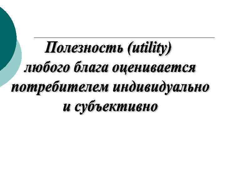 Кардиналистская (количественная) полезность Субъективная полезность, которую потребитель получает от использования продукта, измеренная в абсолютных величинах (рублях, «ютилях» , … ) ¡ Подразумевается, что можно измерить точную величину полезности, извлекаемой при потреблении продукта ¡