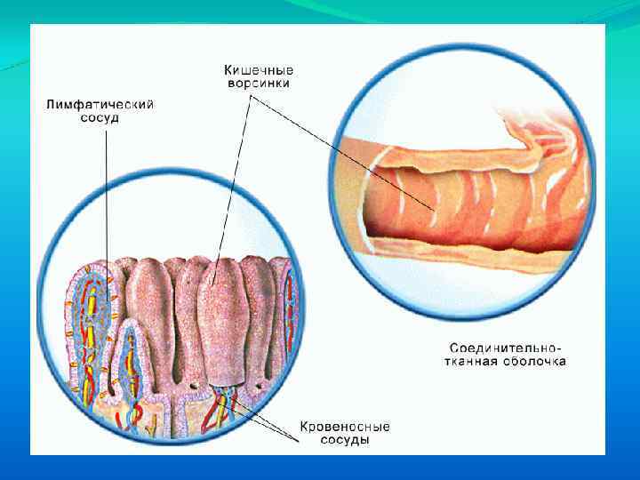 Строение кишечных ворсинок. Каждая ворсинка это микроорган, содержащий мышечные сократительные элементы, кровеносный и лимфатический микрососуды и нервное окончание.