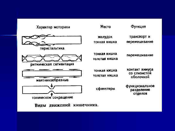 Адекватное раздражение ЖКТ ↓ возбуждение моторики в раздражаемом и ниже лежащих отделах ↓ усиление продвижения химуса в каудальном направлении торможение моторики в вышележащих отделах ЖКТ