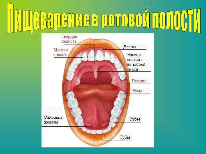 В ротовой полости происходит начальная физическая и химическая обработка пищи, а также ее апробирование.
