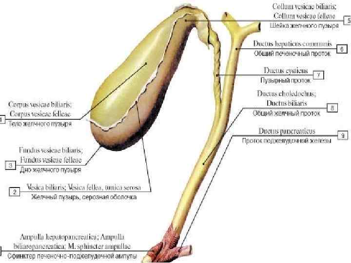 ЖЕЛЧЕВЫВОДЯЩИЕ ПУТИ Гепатоциты продуцируют желчь. Отток желчи: желчные капилляры ↓ междольковые капилляры ↓ правый и левый печеночные протоки (соответственно долям печени) ↓ общий печеночный проток (выходит из печени). Через пузырный проток желчь поступает в желчный пузырь и выходит из него.